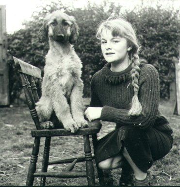 People often ask me why I chose the Afghan Hound, and the answer is that the Afghan Hound chose me! Call it "Fate" or whatever you will, but a Sunday drive in the English countryside led to the unexpected - a sign saying "Puppies for sale" at the gate leading to a country house which was the home of an Afghan Hound kennel - and an 11 year old girl went home carrying a cream colored Afghan Hound puppy.